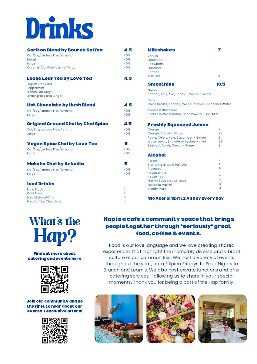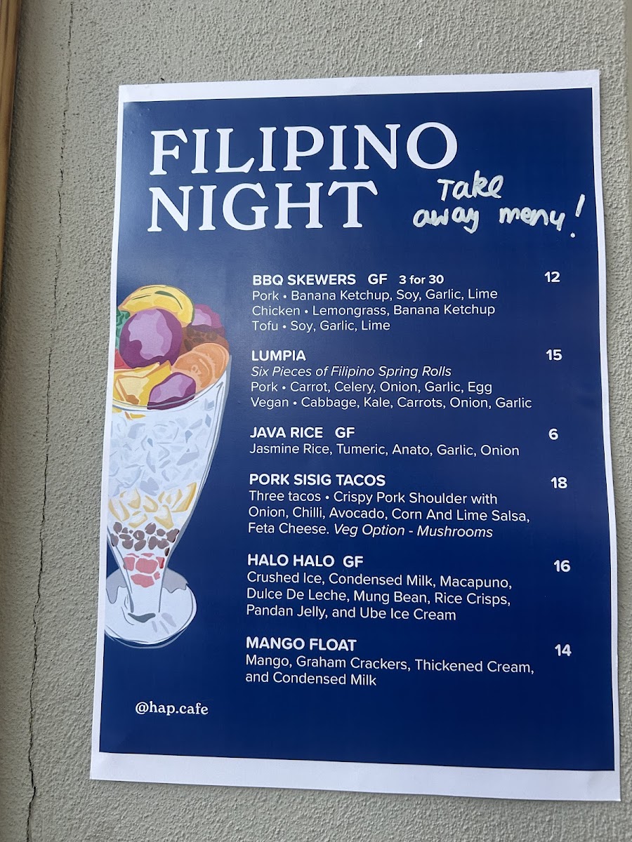 Hap Cafe Menu